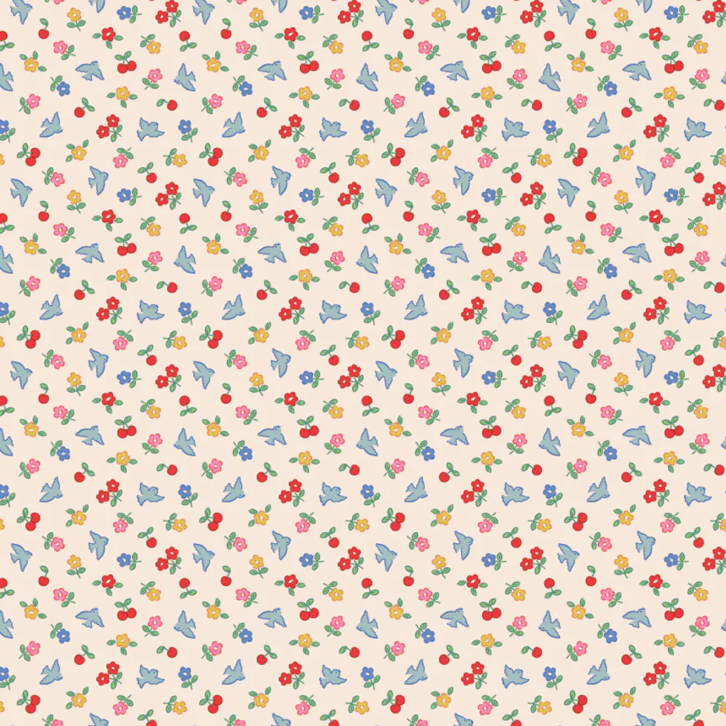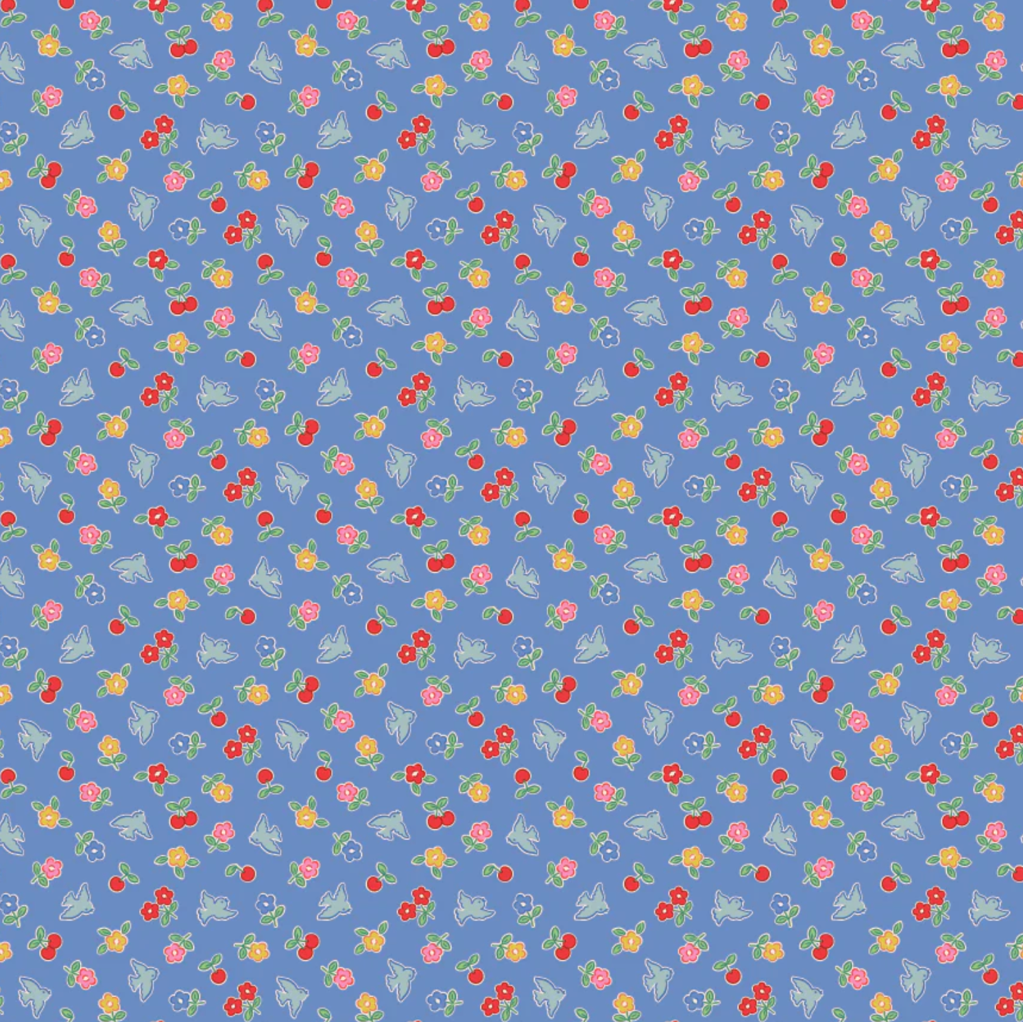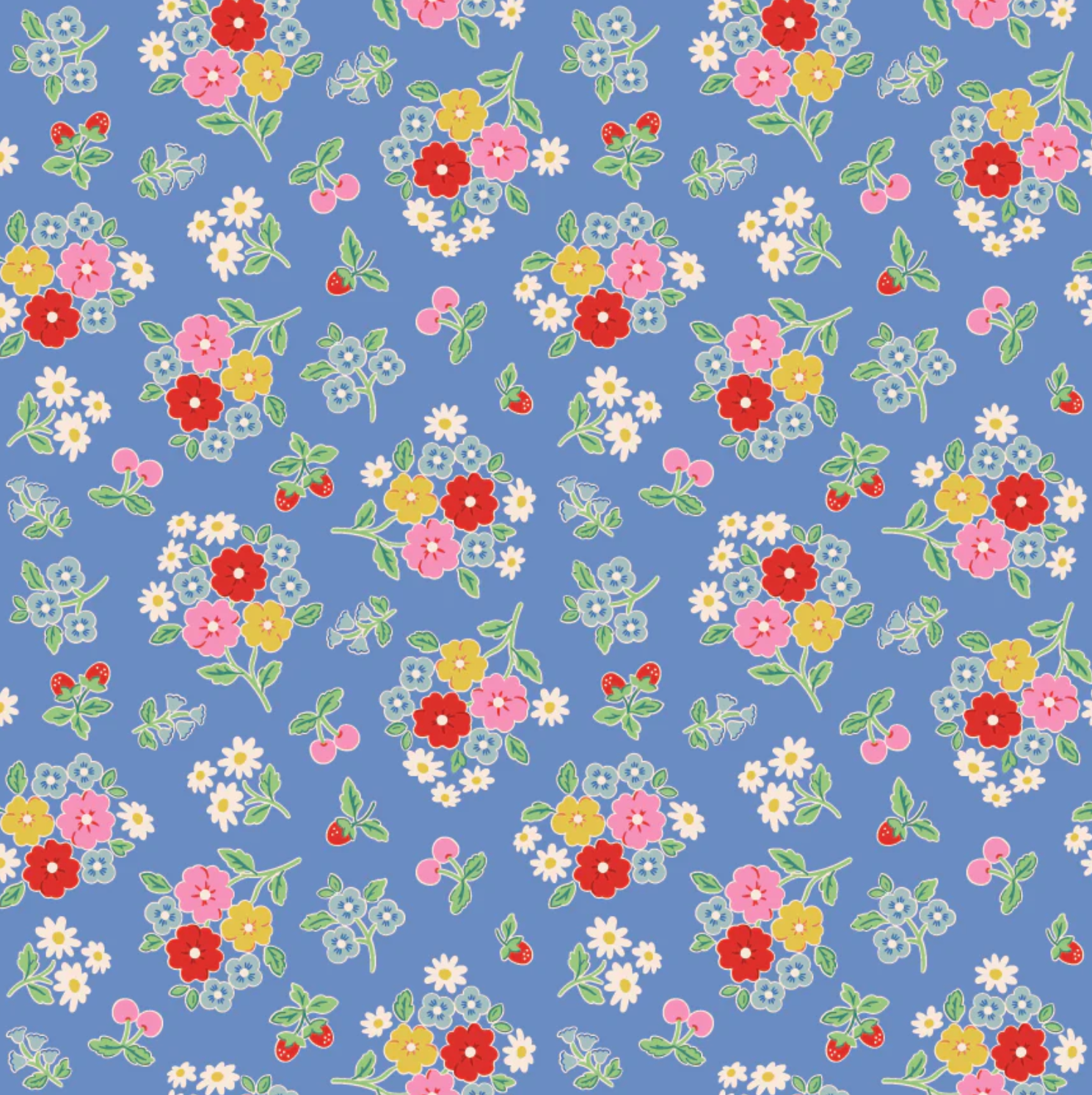 The Bluebells & Buttercups collection by Elea Lutz is bursting with playful designs of flowers, bows, strawberries, cherries, and sweet little bluebirds, each motif sprinkles charm as it dances across periwinkle, pink, mint, sky, red, and white backgrounds. The cheerful project panel adds a touch of vintage flair, featuring a happy saying, sweet bluebird blocks, and handmade-style labels. Perfect for quilts, sewing projects, and more, this collection brings joy and a little bit of magic to every stitch.