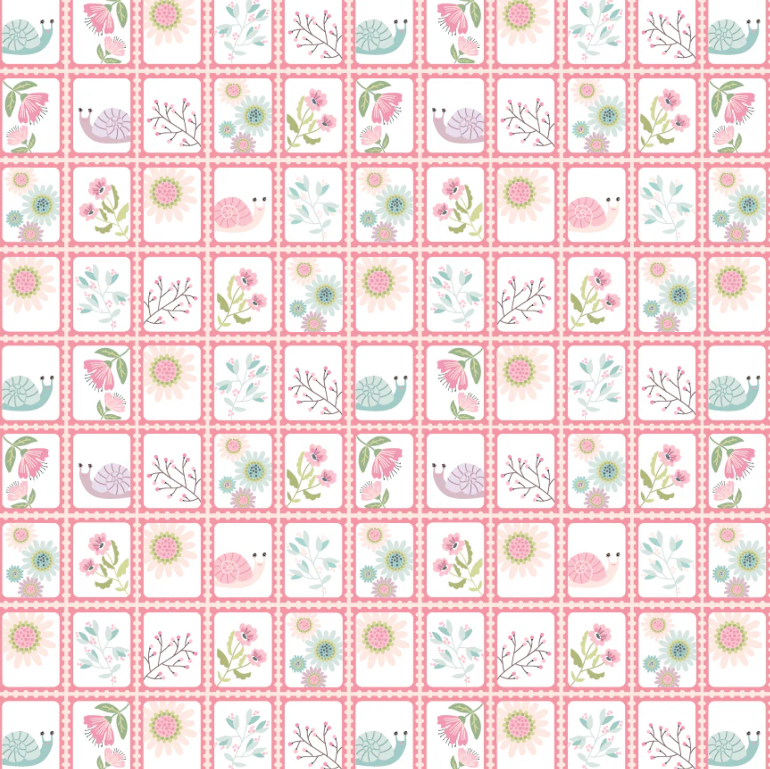 Le Petit Escargot Fabric, Snail Mail Pink, SL26416, Sold by the 1/2 yard, PREORDER