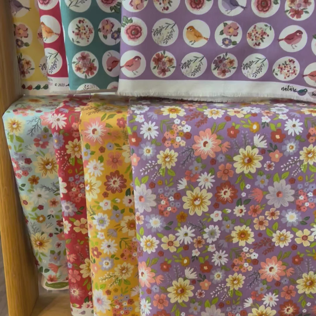 Whisper Quilt Pattern, for the Nature Sings Collection Collection. Created by Jina Barney of Poppie Cotton. A Day in the Country is FAT QUARTER FRIENDLY. Finished Quilt size is 80" x 80", and perfect for the immediate quilter!